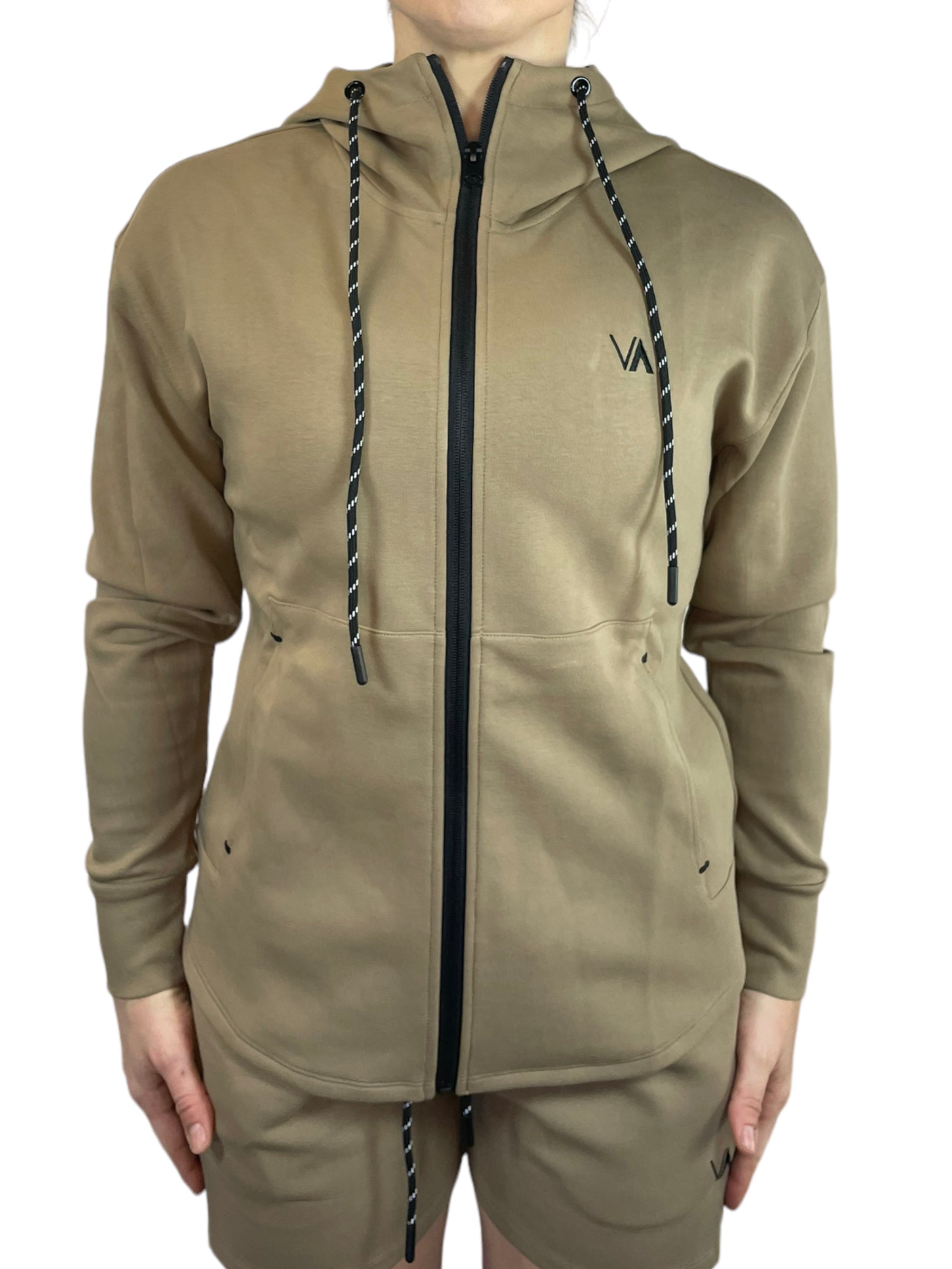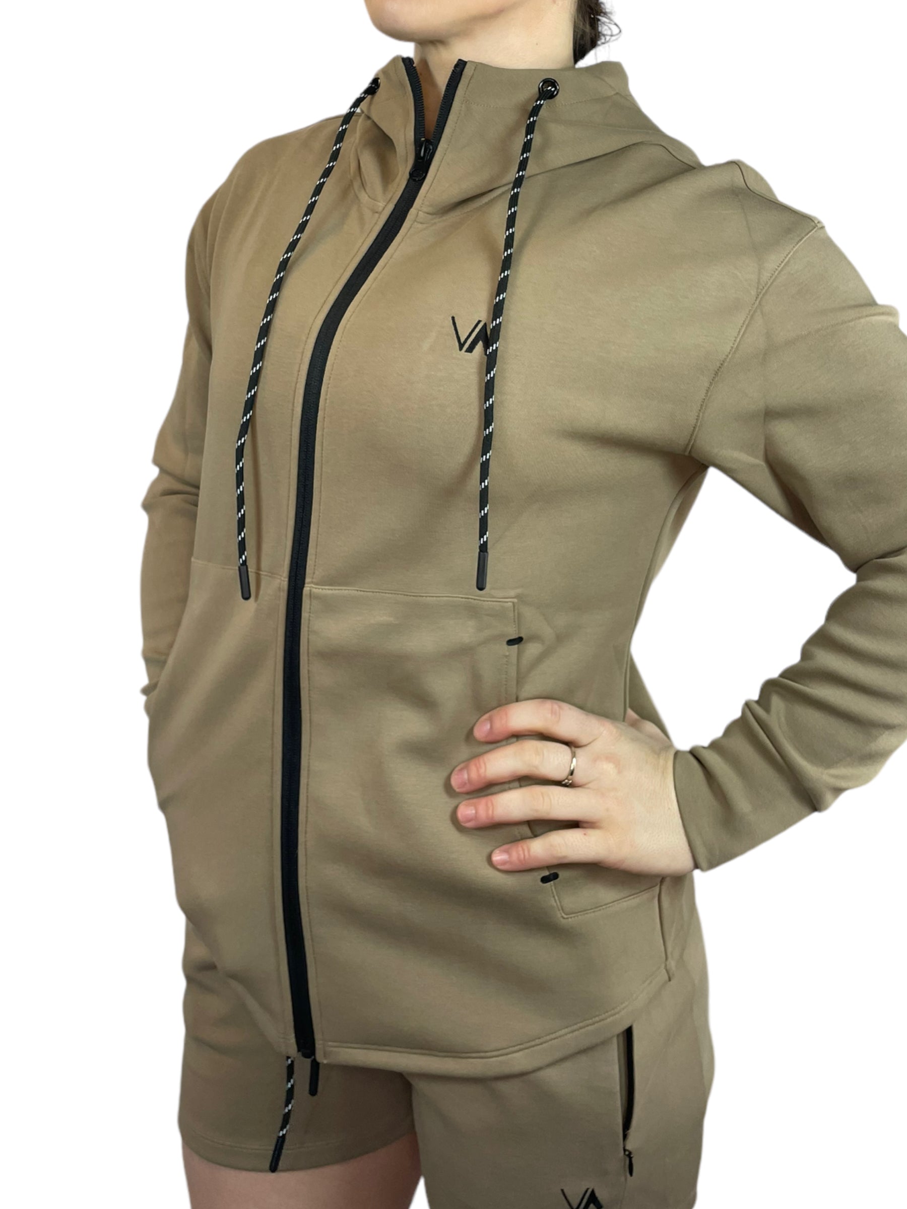 Stay stylish and comfortable with the Aspen Jacket. This cotton polyester blend jacket is perfect for athleisure or lounge wear. Combine it with the matching Aspen Sorts for a complete athleisure outfit.