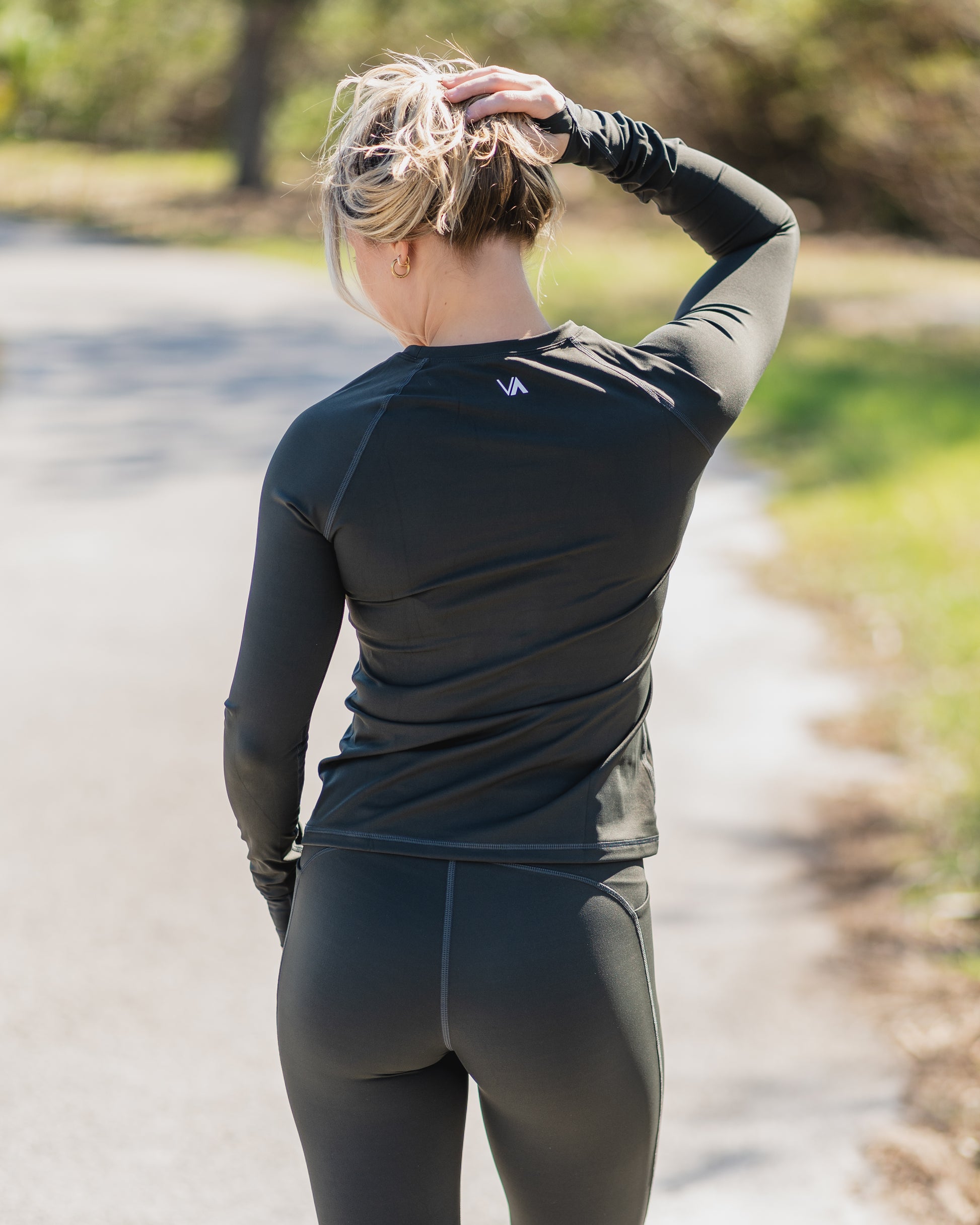Our McKinley Longsleeve is made with performance in mind, featuring a stretchy spandex material that allows for optimal movement without hindering your performance. Additionally, it includes thumb holes for added comfort and practicality.